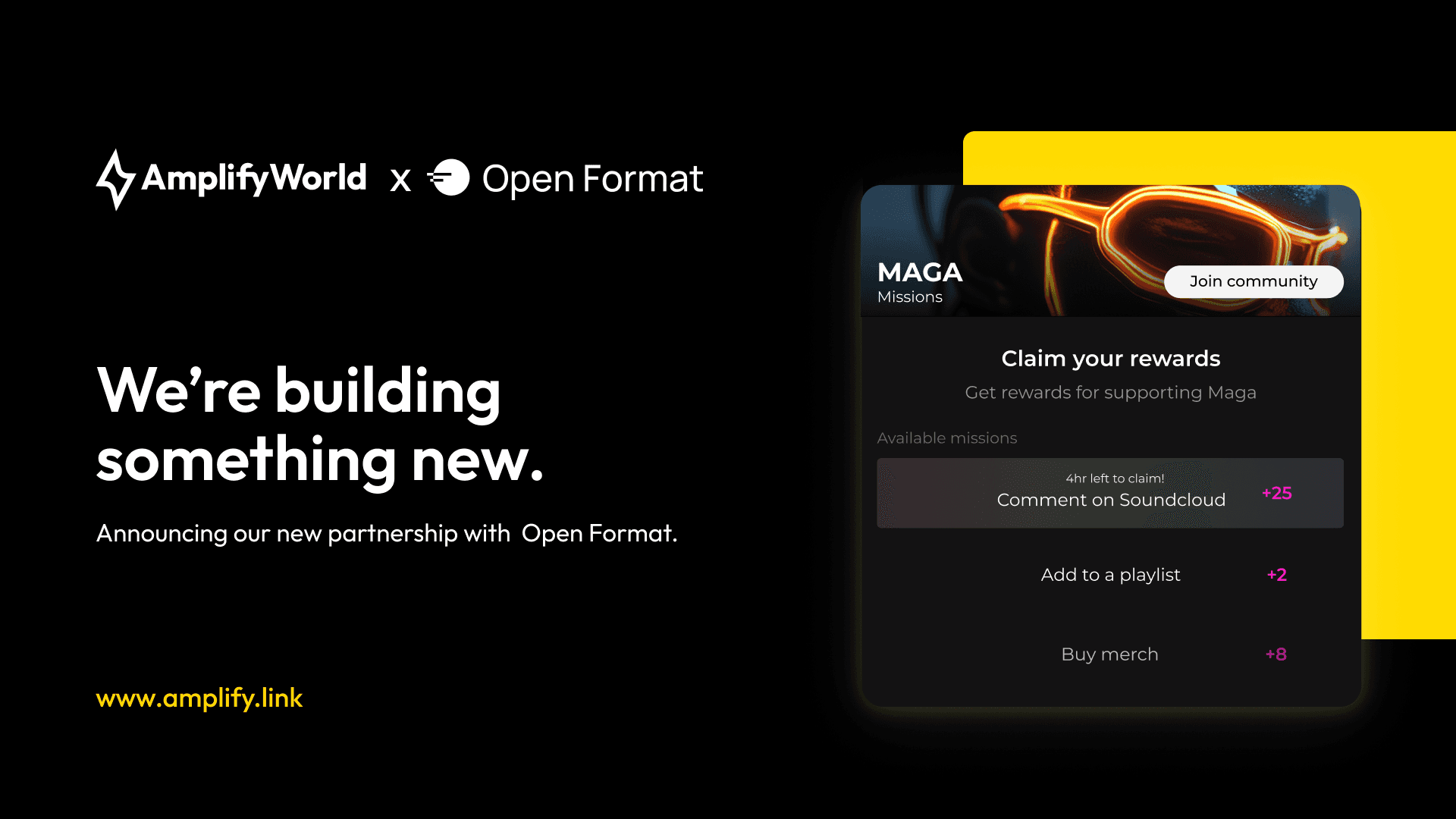 Here at AmplifyWorld, we always strive to find partners who match our vision for an artist-first and forward-thinking music industry. As we move on to the next step of our roadmap – fully building our token economy and community – we’re partnering with Open Format.