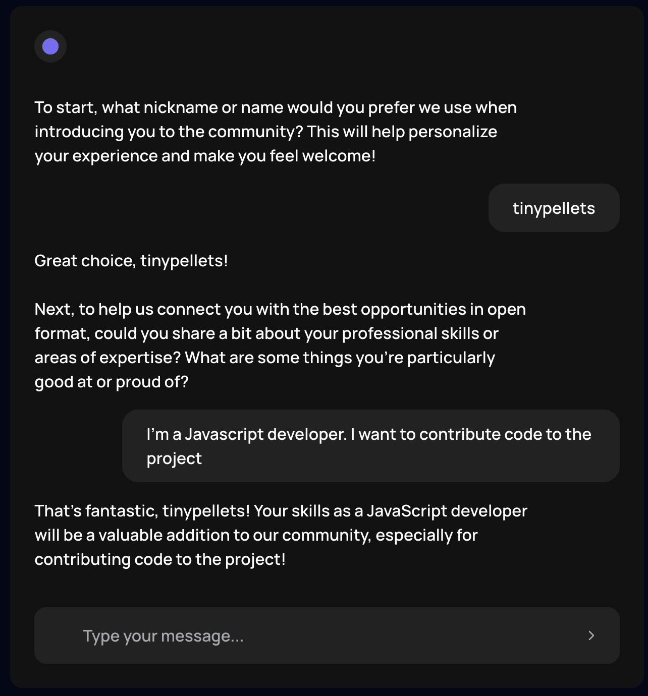 This first iteration focuses on understanding community members and suggesting contribution pathways.