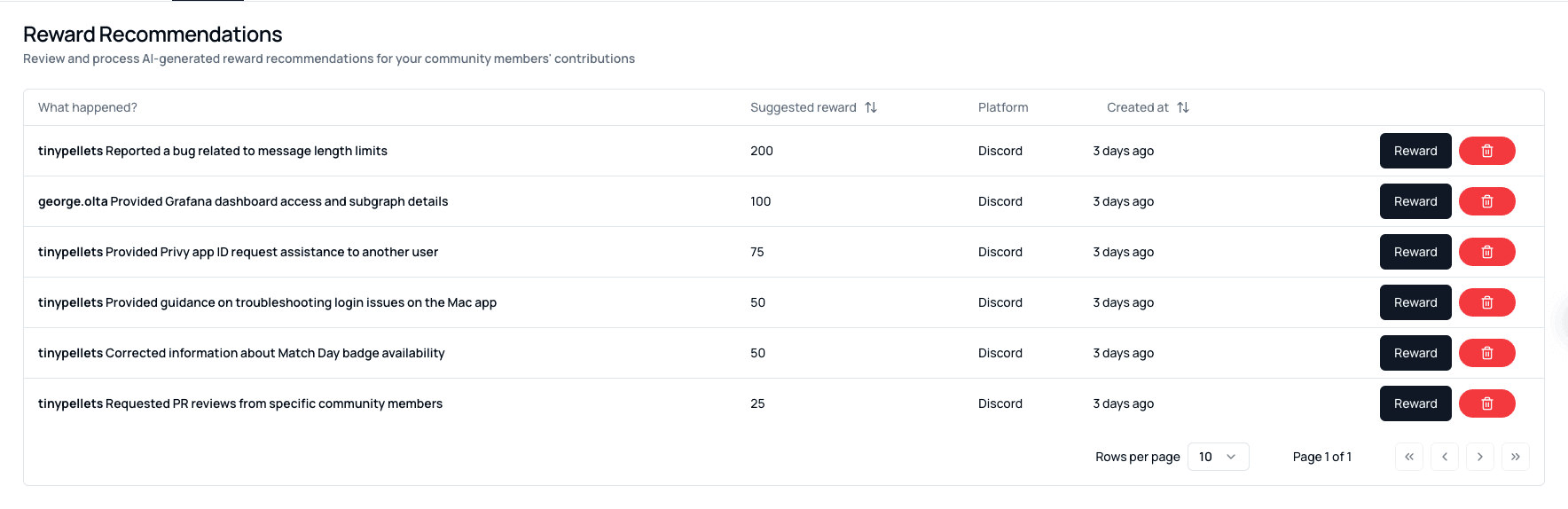 You log into Open Format, review the Recommendations, and reward users instantly with tokens or badges.