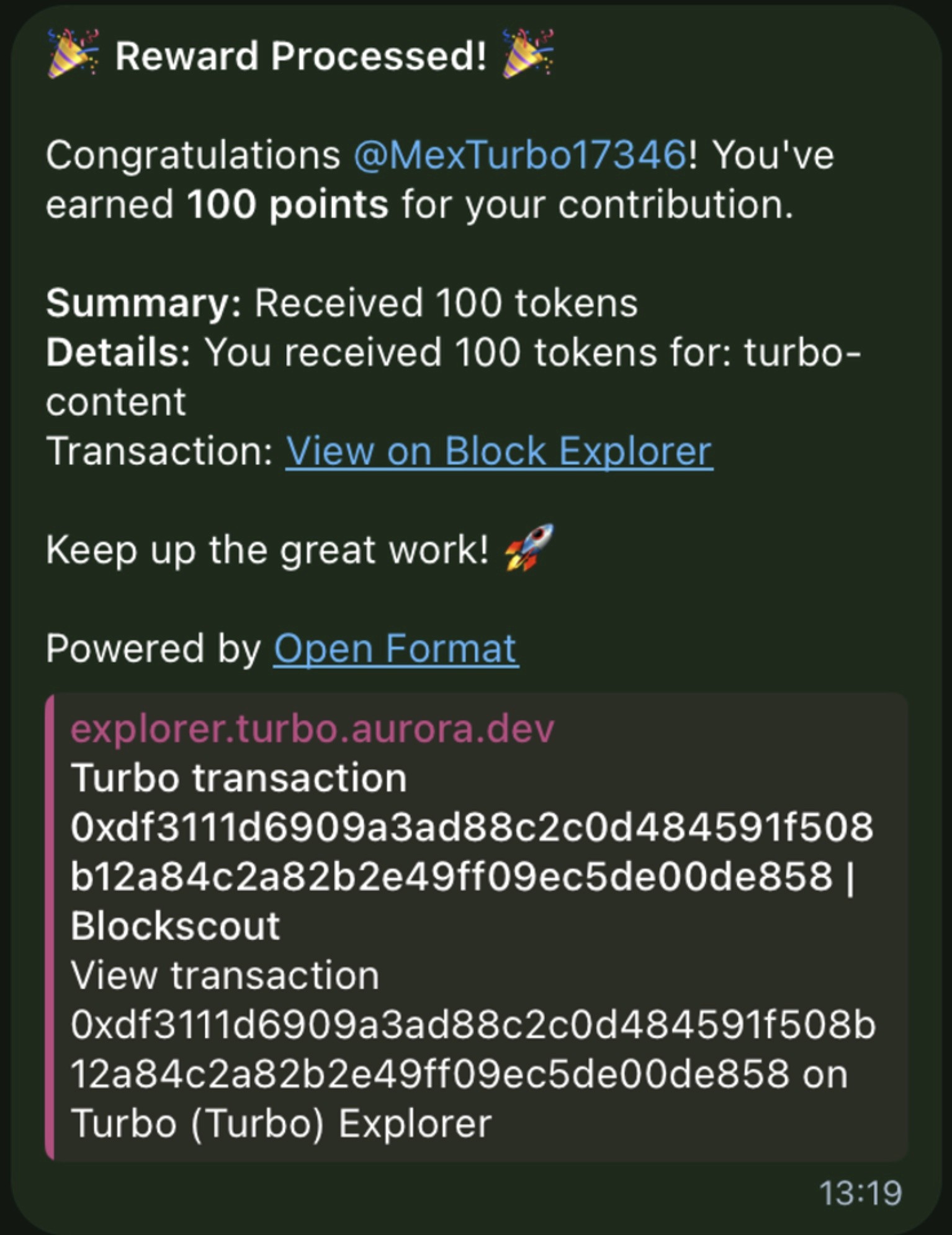 In season 2 we added reward notifications in channel on Telegram, and in the rewarded users’ DM on Discord. This meant that the users knew exactly when they had been rewarded and what they had done that was worthy of being rewarded.