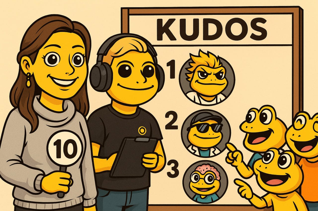 Dan and Sarah from the Open Format team rewarding the Turbo community with Kudos for meaningful contributions across Discord and Telegram - By ChatGPT