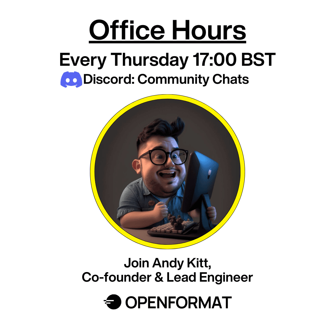 Office Hours every Thursday - with Andy, Co-Founder and Lead Engineer at OPENFORMAT